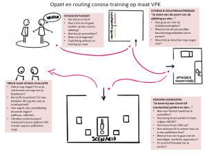 Op afstand (met behulp van (video)bellen vanuit huis), werd er vervolgens dagelijks ondersteuning en advies gegeven aan het Verpleegkundig Inzet Team (VIT) ten aanzien van het standaardiseren van het inleerproces. Het VIT had in het ‘Corona-ziekenhuis’ de taak om zich te richten op “de inzet van verpleegkundigen op zowel de corona als de reguliere afdelingen, met als doel de juiste kwantiteit, kwaliteit (kennis en competenties) en continuïteit op de verschillende afdelingen te waarborgen.” Van elke meeting werden niet alleen maar vergaderverslagen rondgestuurd, maar er werd ook continu hard gewerkt aan gevisualiseerde updates om de nieuwe informatie snel en eenvoudig te kunnen verspreiden onder alle stakeholders.